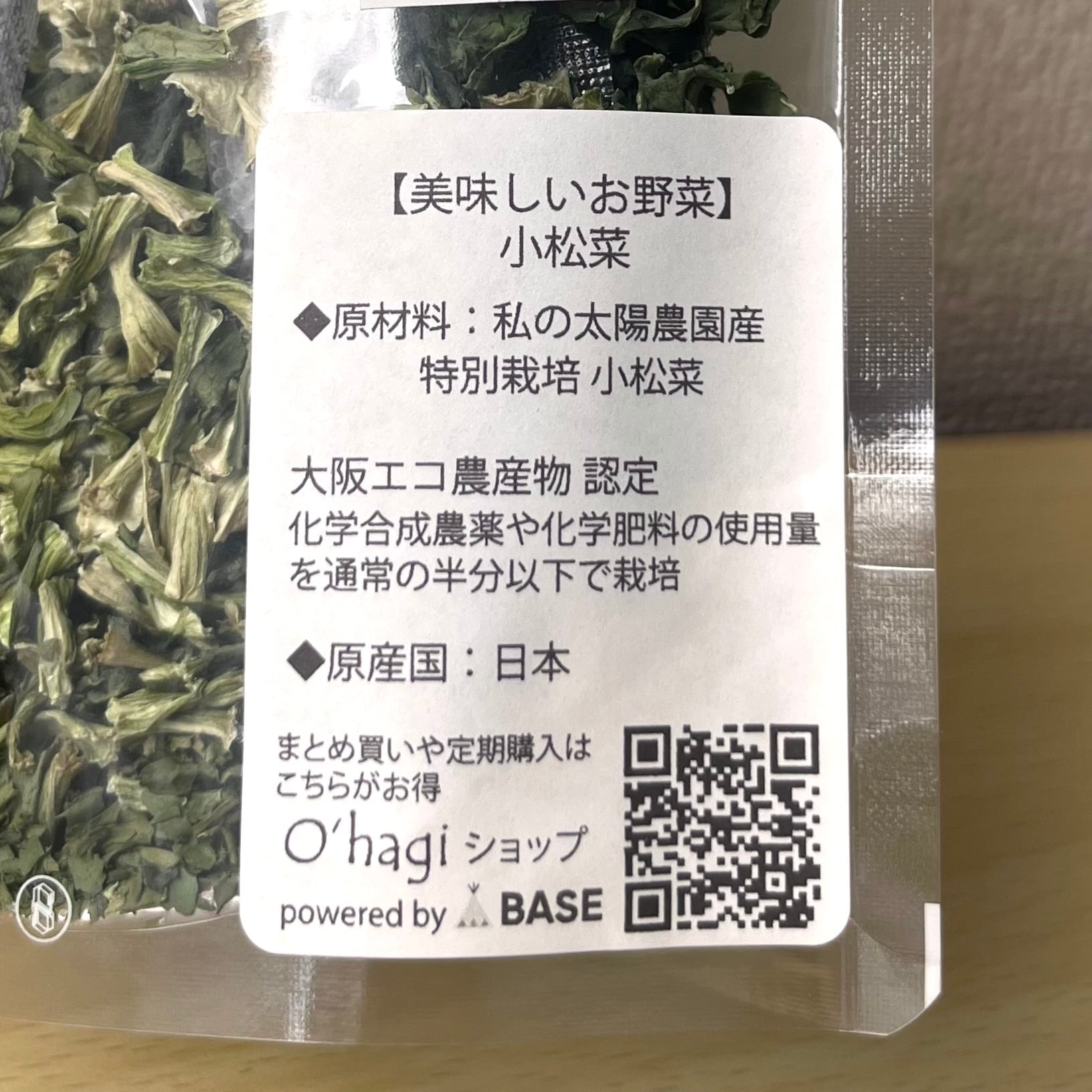 《原材料》私の太陽農園 特別栽培 小松菜 《原産国》日本 《内容量》5g